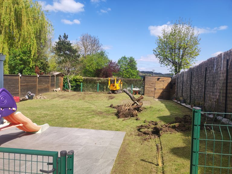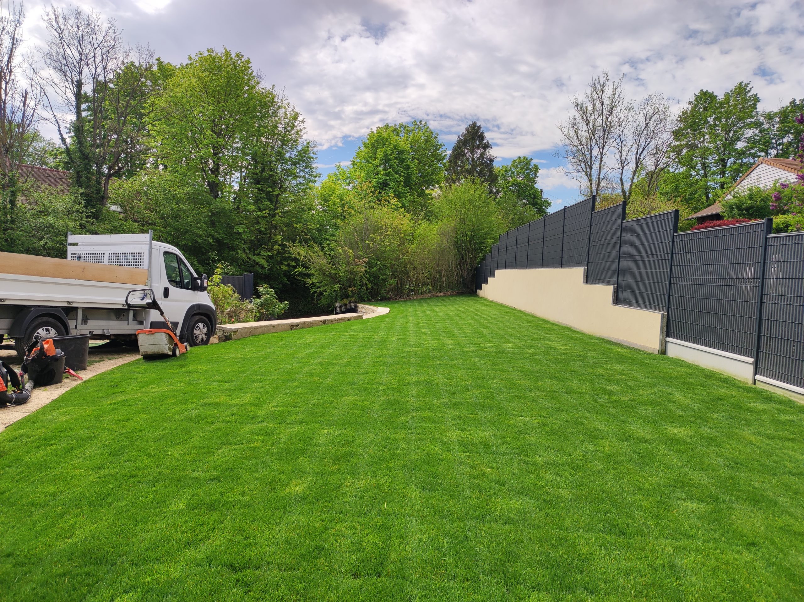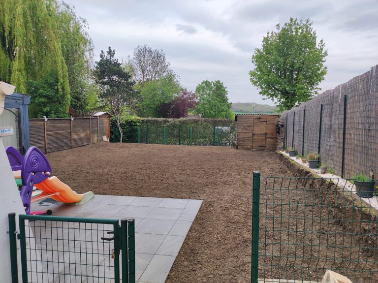 Remise en état du jardin avec création d’une pelouse en rouleaux.